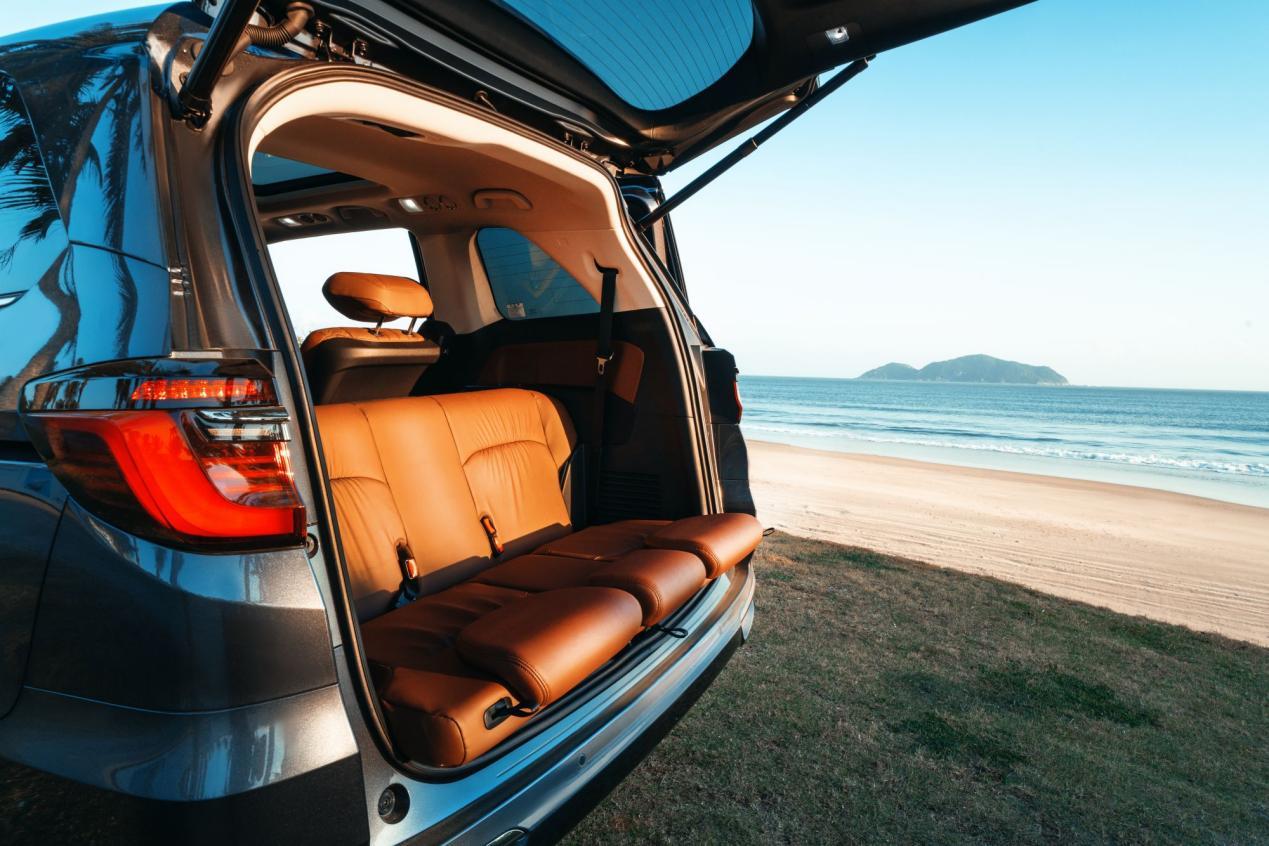 车内空间更是诚意爆棚,二排1230mm的超大高度,1.2m的全身镜都能直立放下,彻底告别部分MPV的压抑感。第三排魔术座椅更是多功能担当,既能收纳成平整储物区,又能翻转变身户外钓鱼台,露营时秒变“观星大平层”,全家的休闲时光全被它承包了!再加上5.4m同级最小转弯半径,辣妈也能轻松穿梭老城区,停车再也不犯愁。