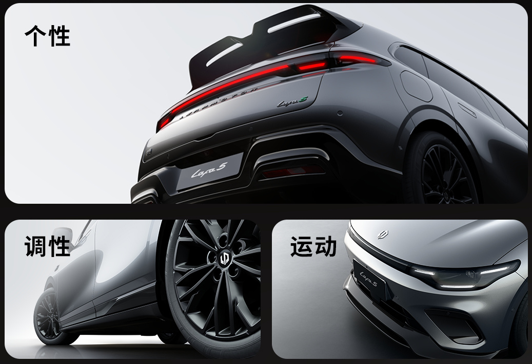 安全方面,Lafa5采用9横7纵笼式设计,车身扭转刚度达34500N·m/deg。其中高强钢占比77.5%,乘员舱采用1300MPa及2GPa热成型材料。车辆配备LMC一体化运动融合控制系统,可在120km/h爆胎、湿滑冰雪路面、高速过弯等极端情况下保持车身稳定。