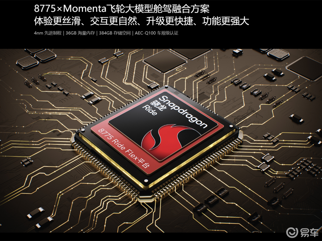 性能方面,新车采用的是高通最新的8775芯片,拥有72TOPS的AI算力。