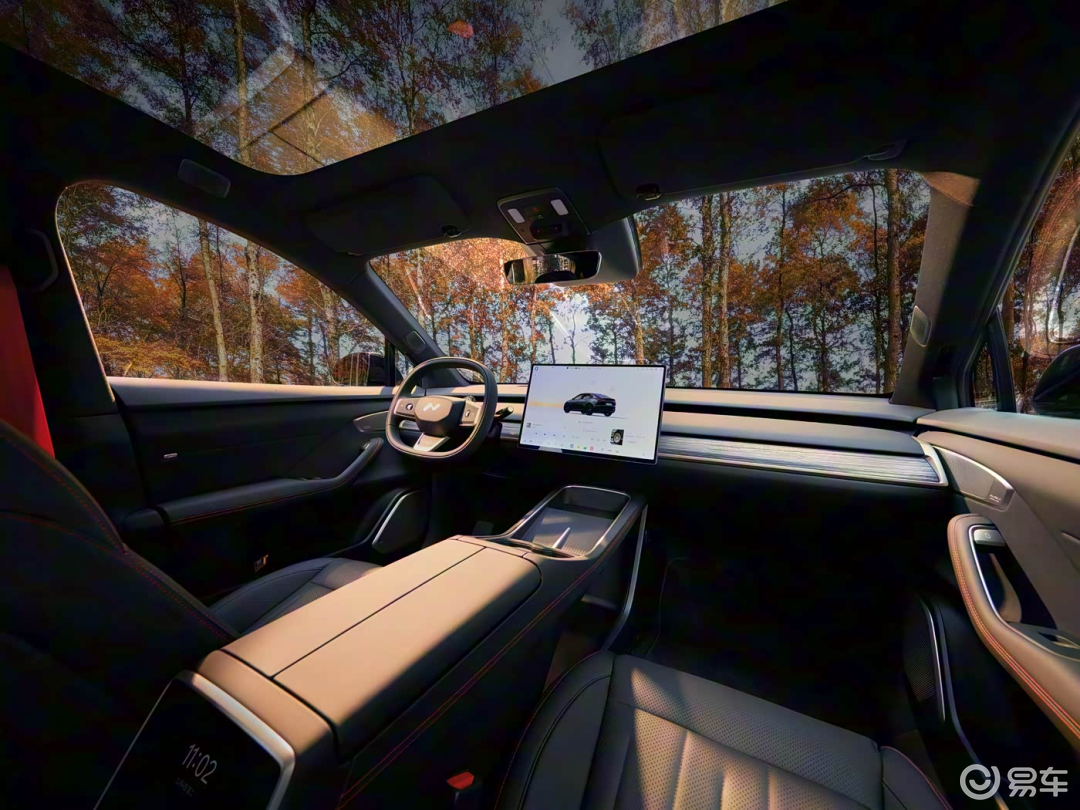 前排是一块17.2英寸的中控屏,后排则配备了一块8英寸的娱乐屏,均获得了德国莱茵低蓝光护眼认证。