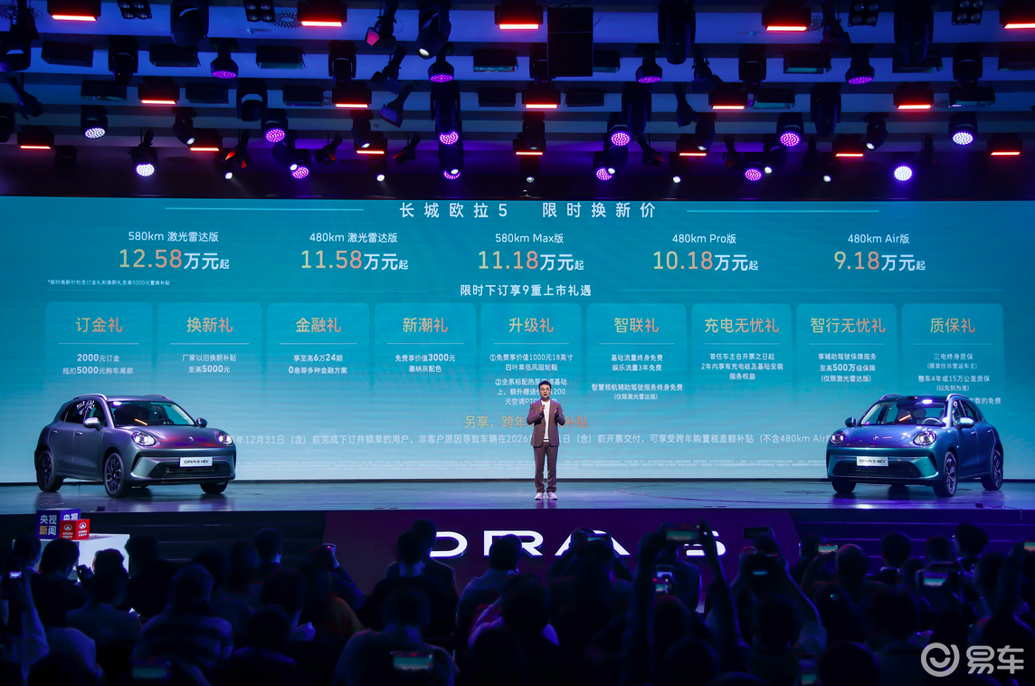 从预售时的10.98万元起,到正式上市的9.18万元起,这1.8万元的价格下调,更显示出长城对这款车的市场决心。再加上9重购车权益,包括至高5000元的置换补贴,欧拉5的性价比已经相当具有攻击性。