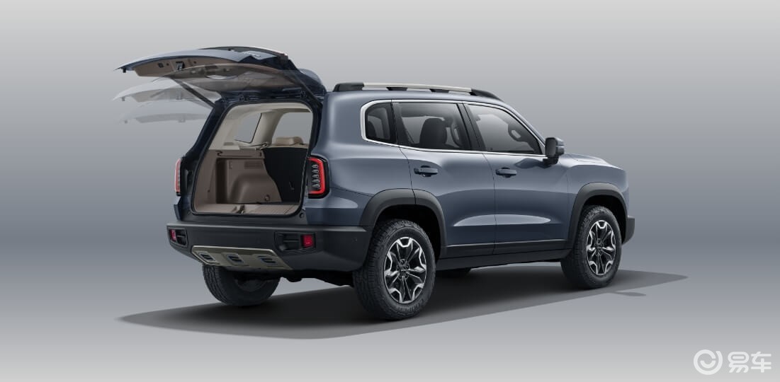捷途旅行者则主打机甲硬派风格,大量应用矩形元素,提升了视觉冲击力。前脸搭载镶嵌透明材质的 “JETOUR”品牌标识,与两侧矩阵式大灯连为一体,气场十足。侧面来看,车窗边框棱角分明,外凸轮眉与固定式上车踏板凸显力量感,车尾经典的“小书包”外挂备胎的设计搭配竖置尾灯,越野气质拉满,冰川白等多款配色更贴合年轻消费者审美。