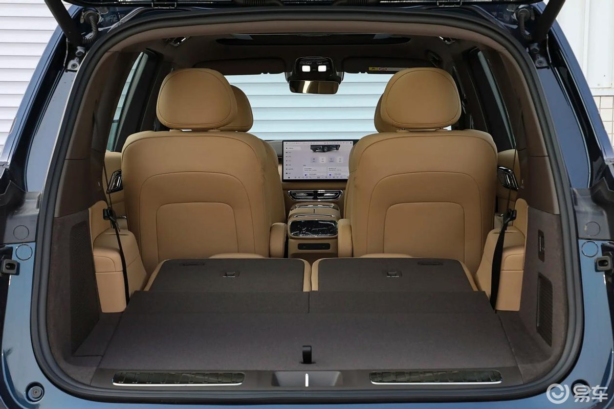 深蓝S09的长宽高尺寸为5205/1996/1800mm,轴距达到了3105mm,定位于大型SUV, 尾部的后备厢有427L,支持拓展到1392L。车内配备了皮质大六座座椅,也采用2+2+2布局,三排座椅都支持加热等功能,前二排座椅多了加热、通风、按摩、记忆等功能,当然,前、后扶手和二排小桌板,也都安排上了。