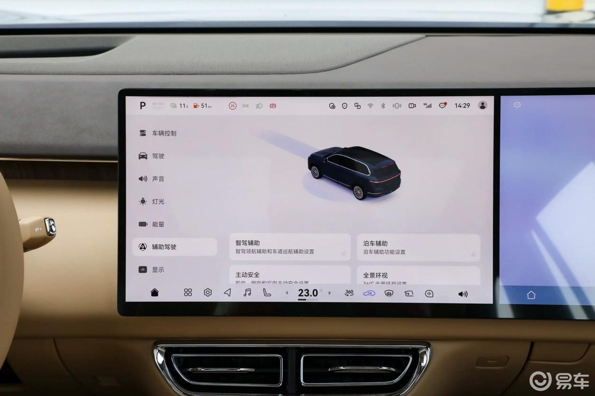 内饰部分,昊铂HL的内饰显得温馨精致,三辐式方向盘,采用真皮材质,附带的加热、记忆等功能比较贴心,搭配电子式怀挡,为驾驶者盲操提供了便利,同时在中控岛台区域配备了50W手机无线充电面板和杯架等配置。车内配备了8.8英寸全液晶仪表盘、17.3英寸中控屏、17.3英寸后排液晶屏、27英寸HUD抬头显示系统,中控屏有高通骁龙8295P芯片的加持,具备5G网络、面部识别、应用下载、语音识别等功能。其次,车内还配备了车载冰箱、自动防眩目内后视镜、多色主动式环境氛围灯、主动降噪系统、香氛装置等配置。