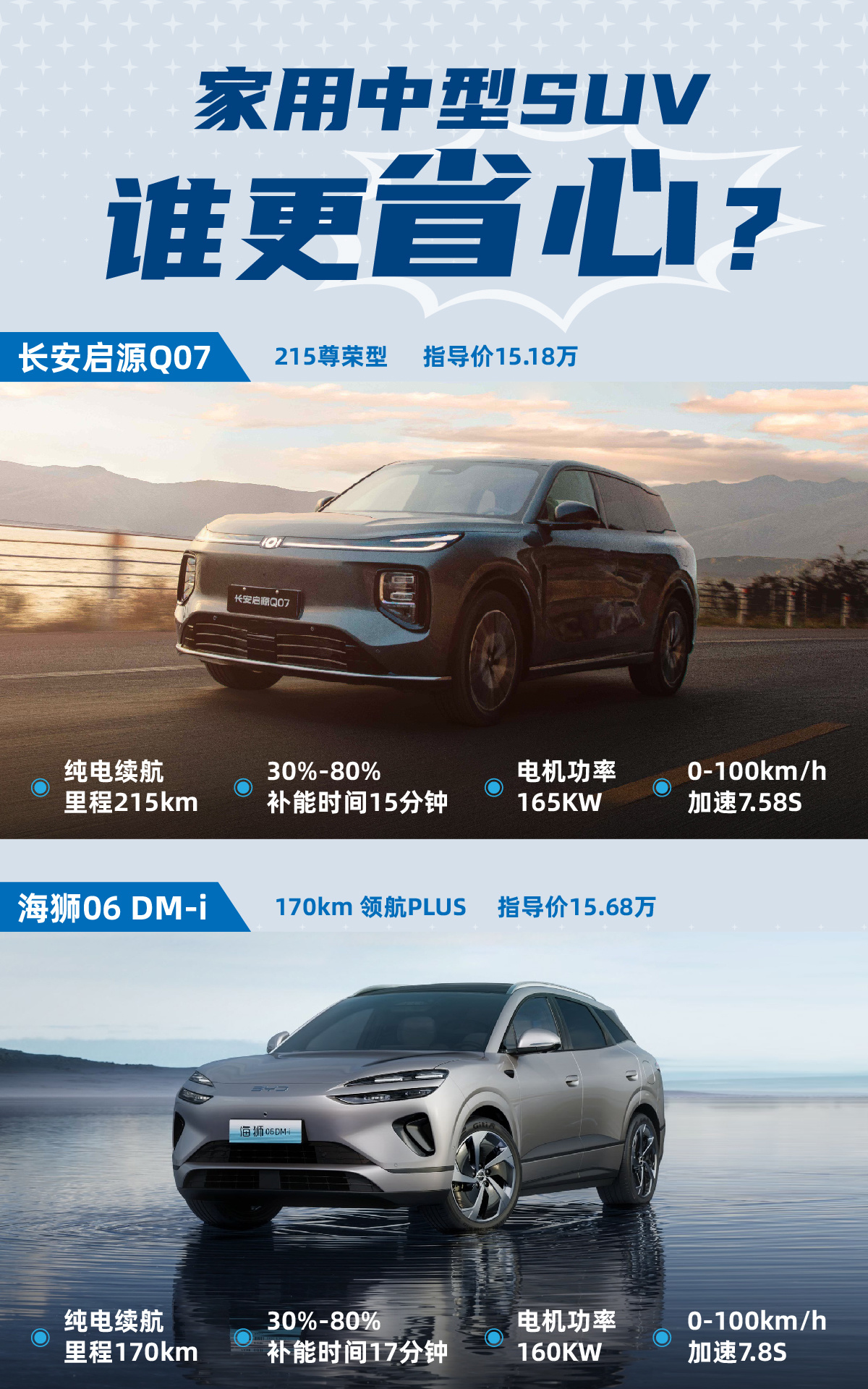 2025年诞生的插混SUV中,长安启源Q07和海狮06DM-i都是比较成功的车型,在15万价位的细分市场的销量都很靠前。要问家用该买谁?其实都不会错,但这显然不是负责任的答案,所以今天我们帮大家好好比一比。
