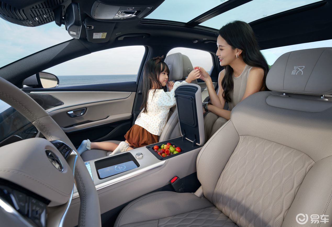 这次汉长续航版新增了三款高级车色,什么雾凇金、松影绿、远峰蓝,名字起得文艺,实车看着也相当有质感。车内更是诚意满满:副驾中控用了婴儿肌肤般触感的皮质,怀挡设计让中控区域更简洁。最实用的是——标配了4.5升的智能冷暖冰箱(-6℃到50℃都能调),夏天冰饮料,冬天热咖啡,妥妥的“幸福感配置”。