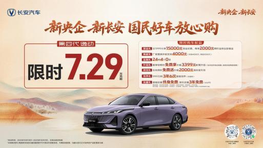即日起, 用户购第四代逸动/CS55PLUS, 可享 “专属上市礼遇 ” 。第四代逸动限时售 价 7.29 万元起, 购车即享 7 重好礼。