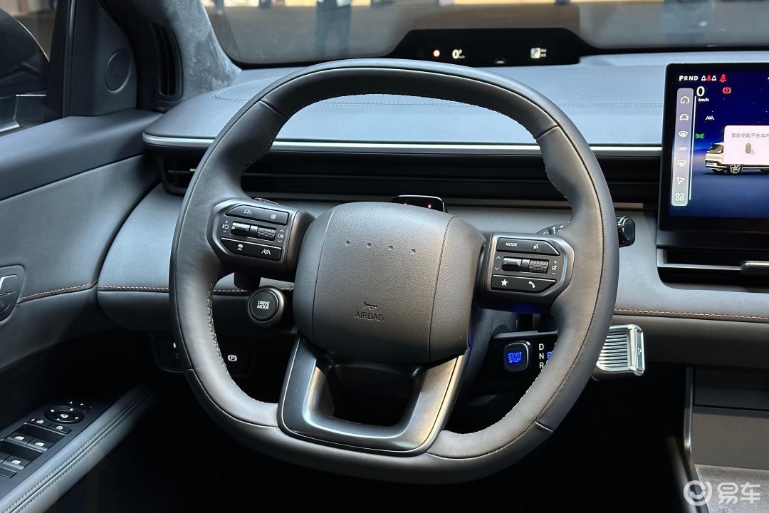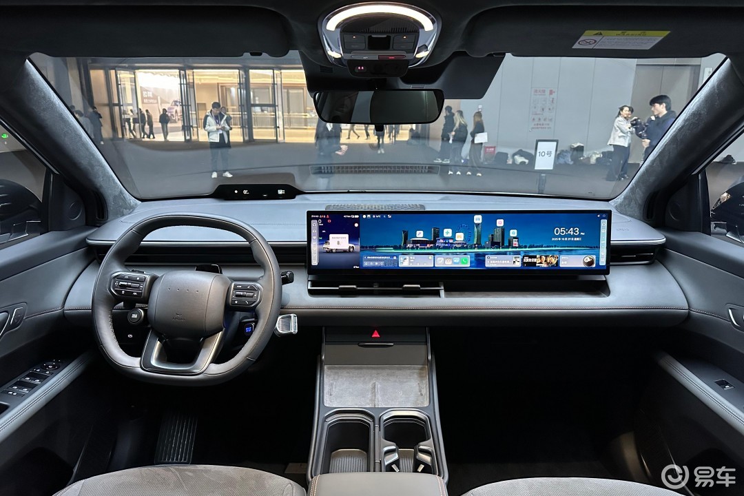 内饰方面,新车车内采用阶梯式中控台设计,最引人注目的是中控屏与副驾娱乐屏组成的27英寸4K双联屏,车机内置高通8295芯片。新车采用怀挡设计,中央岛台区域拥有丰富储物空间,并配备手机无线充电功能。