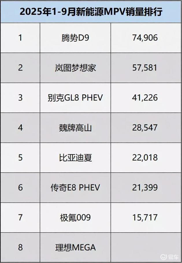 再看新能源MPV这个细分市场,此前一直鲜有增程车型入局,但如今的市场格局已十分清晰并逐渐固化:电池和油箱容量保持克制、定价相对亲民的PHEV车型已成为主流选择,像腾势D9 DM、岚图梦想家PHEV、别克GL8 PHEV等已稳居该领域TOP3。