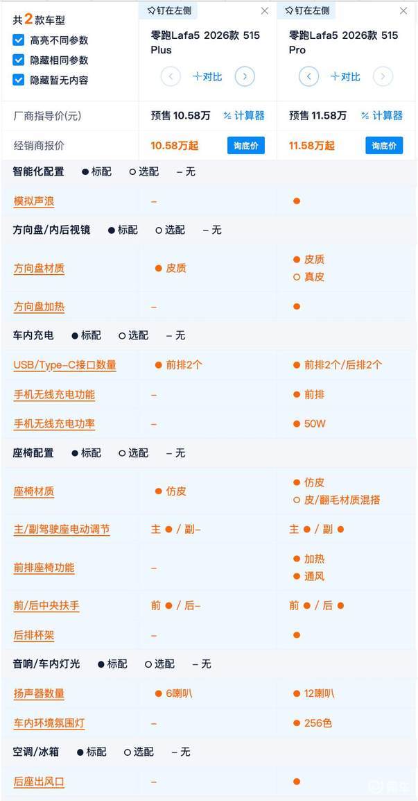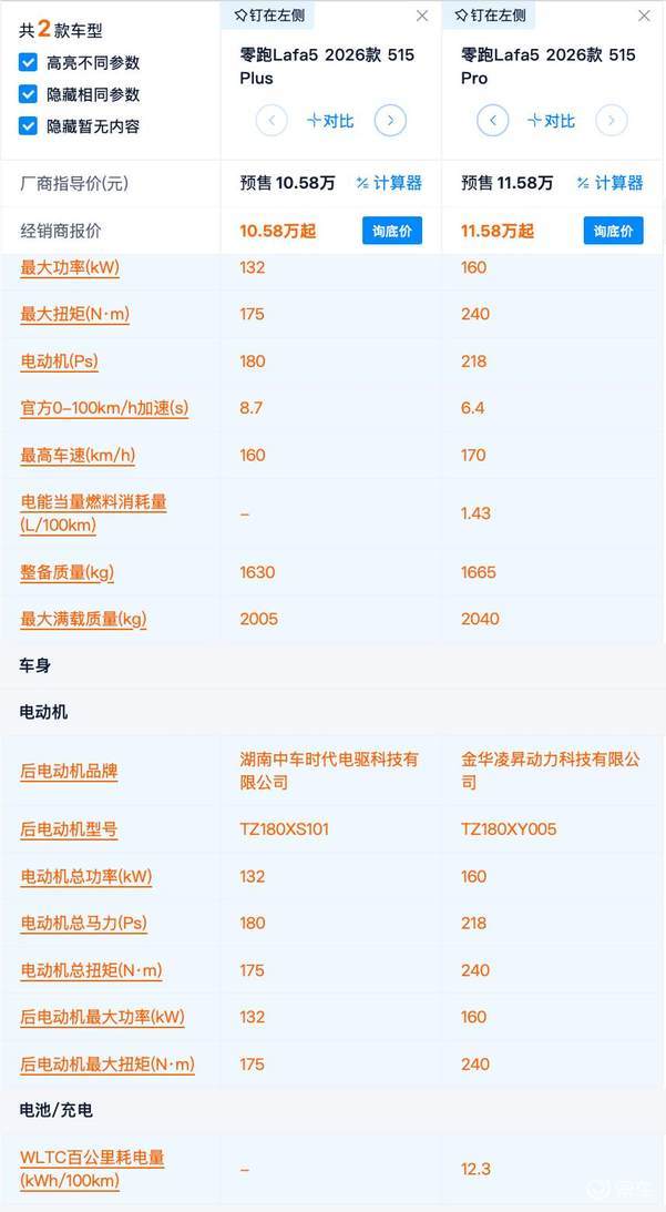 续航515km版本,配置有何区别?