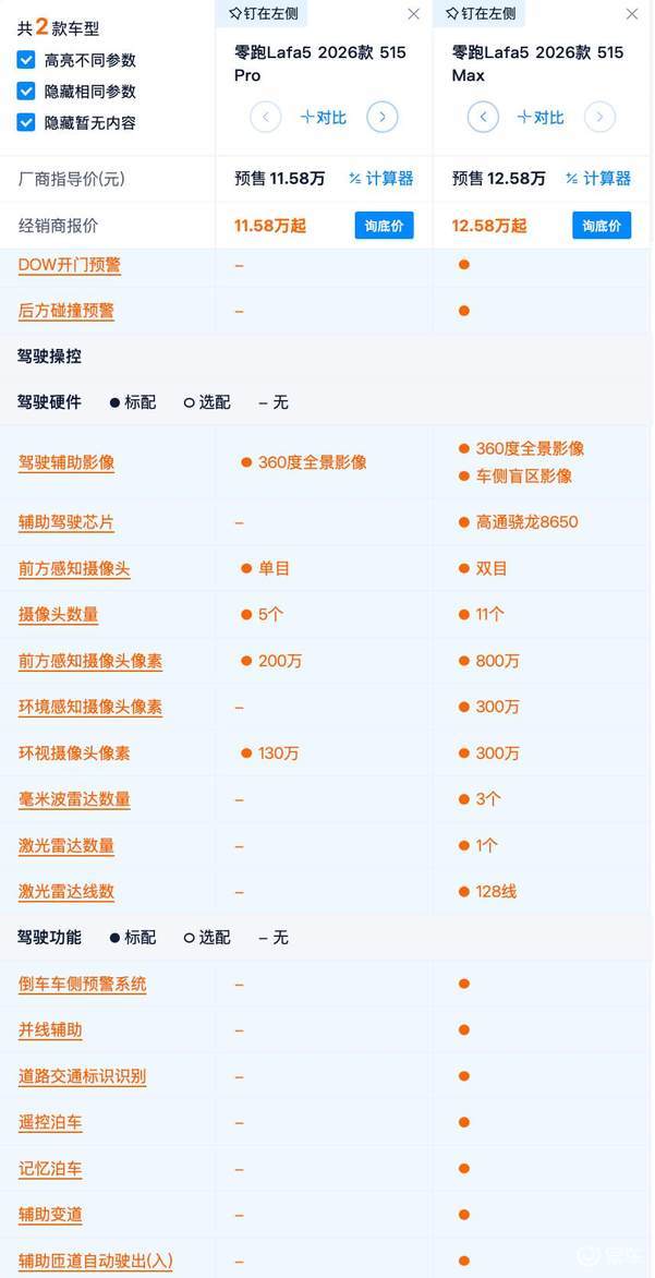 所以Max版多出了城市和高速路段的智驾领航,而且Max版的芯片也从8155升级到了8295P的芯片。这样来看,其实1万元的差价也不算多,但是用户要根据自己的需求进行选择。偶尔有智驾需求的话,选择Max版就更合适,而如果对智驾没有要求,显然选择Pro版更合适。