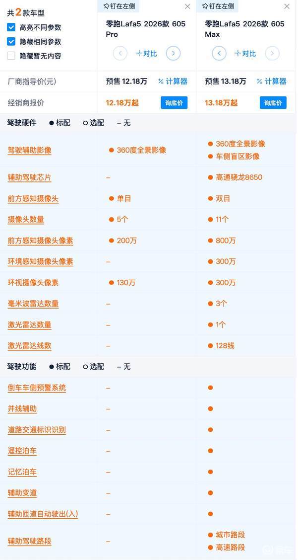 价格来看,这两台车的差价依然是1万元,而Max版比Pro版多出的主要配置就是一颗128线的激光雷达。