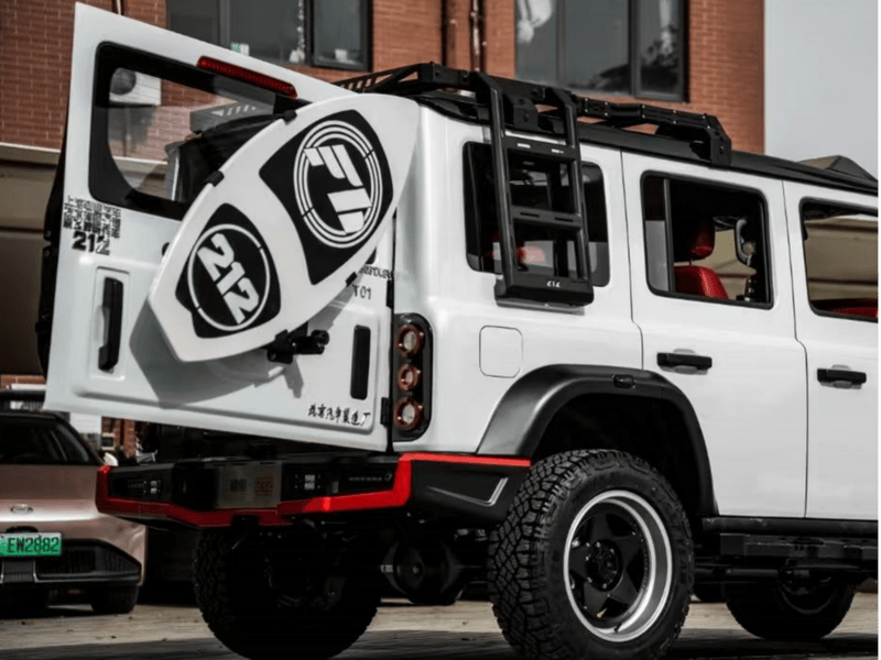 景飞牌212在外观上延续了经典的“一拱二圆三横四纵”设计语言,方正硬朗的车身轮廓,仿佛在向那个充满激情与探索的年代致敬。一眼望去,你依然能认出它那标志性的身姿,仿佛瞬间被拉回到那段崎岖却充满热血的越野岁月。