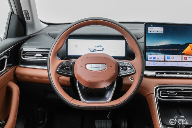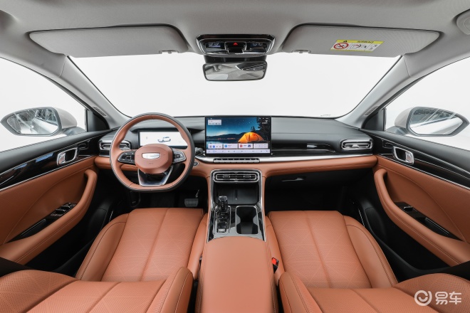 第5代帝豪的内饰也全面升级,全系标配Flyme Auto智能座舱,整体设计风格也是结合了银河星耀6以及吉利星瑞的元素,比如配备和星耀6一样的10.25英寸的液晶仪表和14.6英寸的高清中控屏,同时采用和星瑞同款的三辐式多功能方向盘。第5代帝豪的车机系统可支持小窗多任务、SmartBar快捷交互、全面屏手势操作、无界空间云端应用与全场景语音控制,同时可支持Carlink及HUAWEI HiCar无感连接。