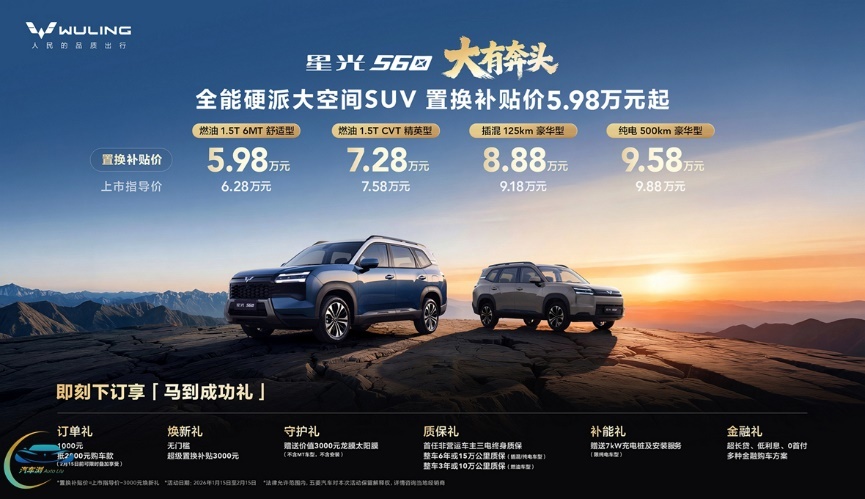 1月15日,五菱上市了首款硬派SUV——全新星光560,这款造型方正、超大空间的SUV新车,置换补贴价为5.98万至9.58万元,除了“让生活‘大有奔头’”的大空间优势之外,另一点格外值得关注:其4款新车不仅动力模式横跨燃油、插混和纯电,而且燃油版车型之中还有一款6MT手动挡车型,对于玩越野的人来说,“机械感”是不是又回归了?