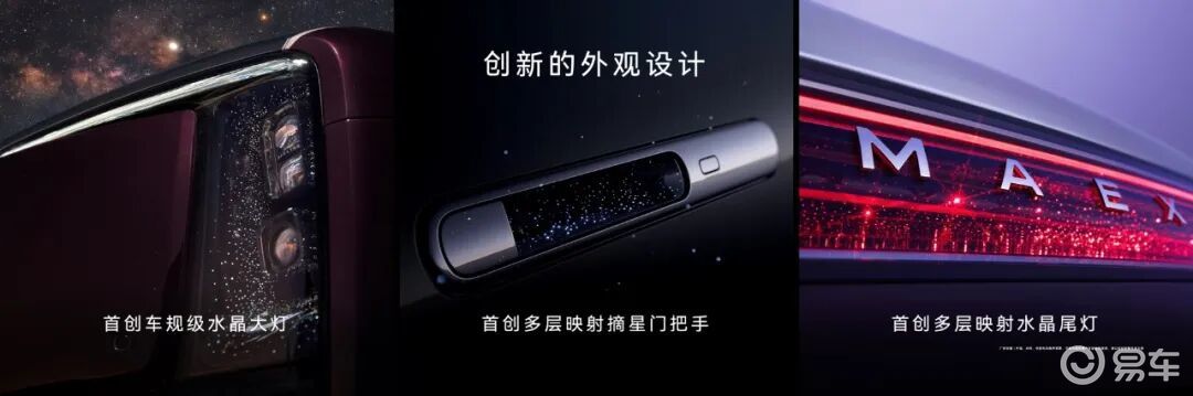 外观设计上,尊界S800采用天地人和设计理念,融合尖端科技与美学。双百万像素星河大灯车规级水晶大灯设计,历经近百道工序手工打磨,彰显匠心工艺。星云画卷尾灯运用多层映射技术,呈现一步一景的动态成像效果。手握星辰门把手独创立体星光技术,于细微处尽显科技的浪漫。