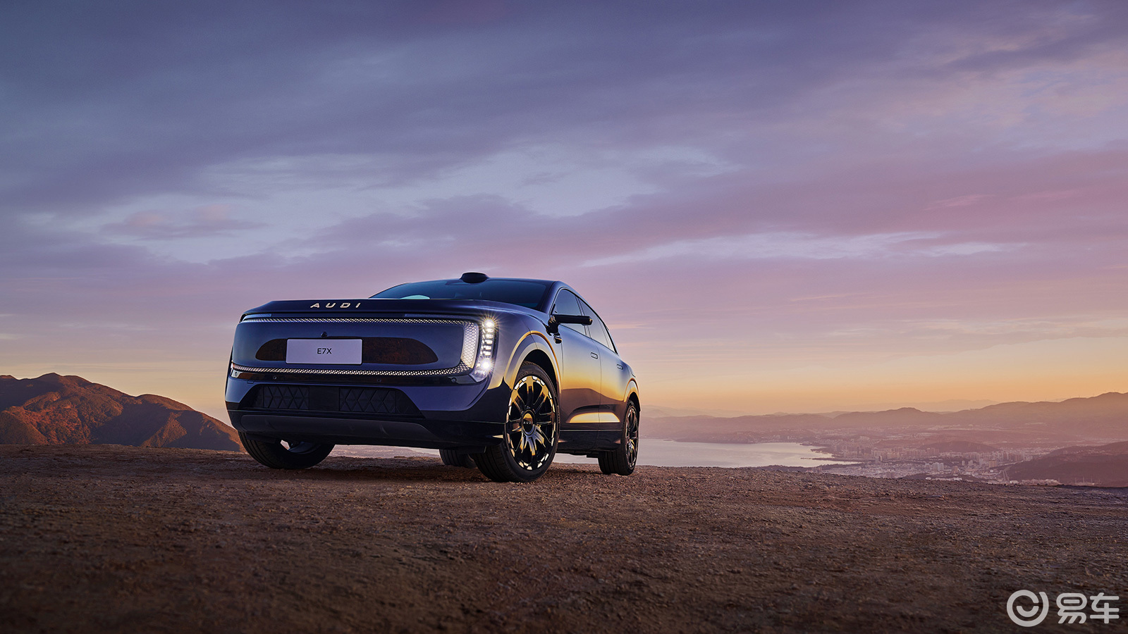 外观设计奥迪E7X延续了AUDI品牌家族化设计语言,封闭式前脸与环状式的点阵LED灯带,与奥迪E5 Sportback一脉相承。新车前脸采用了宽大凌厉的设计,抬高的前脸搭配主动式进气格栅,开合之间御风以形、蓄能于行。