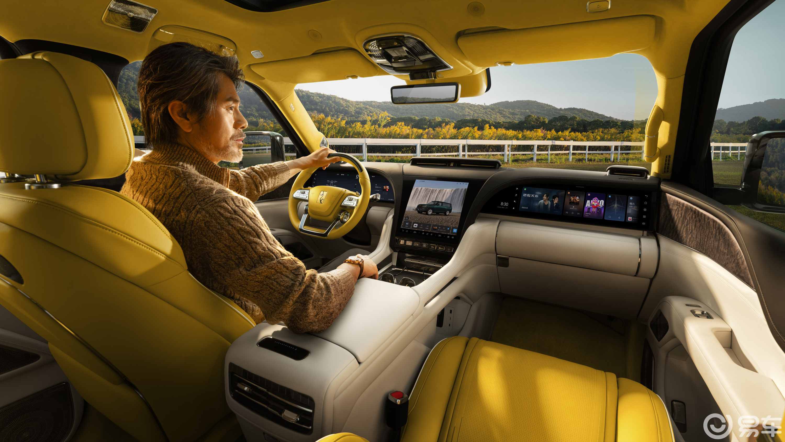 车内则是另一重天地。全新内饰配色“鸣沙金”,黄白拼色恍若敦煌日出时月牙泉与沙山的光影交错。座椅山纹刺绣,取形于祁连山脉的轮廓,以刺绣手法演绎书法的笔墨意蕴。配合前部飞流瀑布曲面屏,形成“前有江河奔涌,后有群山倚靠”的辽阔气场。